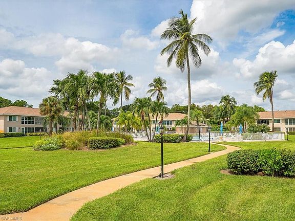 Just 2.5 mile to Olde Naples and the Beach for under $300k is hard to find, especially with low low fee's. This home is less than a one minute walk to the Bealls plaza which includes movie theater, new Publix grocery , and 11 restaurants! This is a rare first floor end unit with lots of light and a huge back yard area. Lovely maintained unit is clean and ready to move into. The laundry room is huge and will allow for bike storage with ease. The primary bedroom has a walk in closet perfect for two people. This unit was painted top to bottom, new lighting added and updated outlets. Split floor plan is perfect for privacy and flooring is all hard surface, no carpet! . Enjoy the community heated pool . This is a perfect vacation rental or for year round living. No car needed is rare and sought after in Sunny Naples Fl. Own your piece of paradise today. Bonus, roof replaced in 2019 and AC replaced in 2018. Pet friendly, 2 pets 25 lbs or less each allowed, rare!