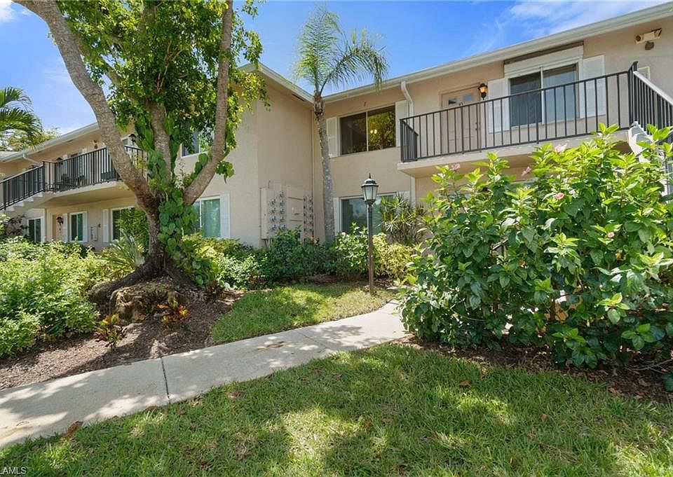 This fully furnished, light bright an airy Condo is being offered TURNKEY! Just bring your toothbrush! Your 2nd Floor End Unit contains 2 large bedrooms and 2 bathrooms that are separated, in a large open concept floor plan. The large utility room contains a washer & dryer for in-unit laundry. The upgraded kitchen is complete with white cabinets and granite countertops. Your master bedroom on-suite is situated in the rear of the property so you have your own sliding patio door out to your covered screened lanai looking over a beautifully landscaped area. The oversized lanai also features Jalousie windows turning the space into a perfect Florida room! Just steps away from your front door is your gorgeous resort style courtyard community pool that is perfect for both entertaining and peaceful relaxation. Located in the heart of Naples, your front door is just 3.5 MILES TO THE BEACH! Welcome to Paradise Living! This one will go FAST!