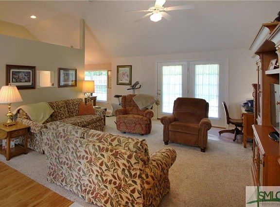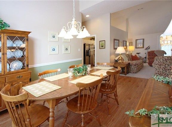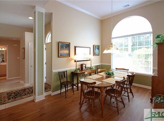 Immaculate, move-in ready 3 bedroom, 2 bath single story home in conveniently located Legacy Square, just 15 minutes from Historic Savannah. You will love the light, bright cheerful feel of this well-maintained home featuring a spacious great room open to both the kitchen and separate formal dining room. Master bedroom (split floorplan) with huge walk-in closet features tray ceiling and deluxe master bath with separate shower and jetted marble tub. Extra nice features in this home include stainless steel appliances, high ceilings throughout the main living areas, an abundance of natural light, new flooring, 200 sq ft of floored attic storage space entered from garage and private, wooded, fenced backyard. Legacy Square is ultra convenient to shopping, restaurants, golf courses, fitness centers & more. Pleasure in the beautiful Live Oaks throughout the neighborhood and well-maintained community pool, playground & tennis courts. This home is a must-see!