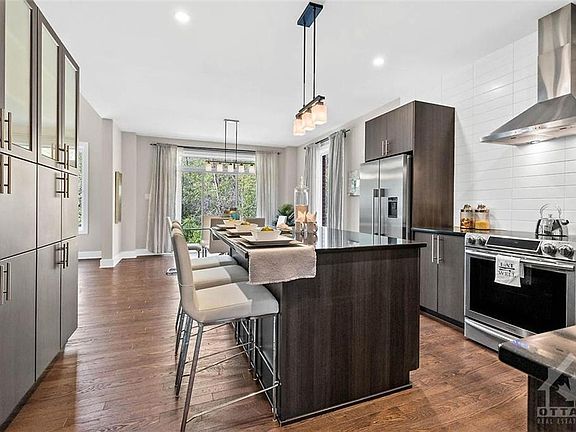 Forget ordinary and think extraordinary as this is not your average everyday Barrhaven home! Full brick/stone home offers 9-foot ceilings throughout, no rear neighbors and gorgeous private views of the forest behind you. Immaculately maintained and well appointed with hardwood, quartz, two storey ceilings, custom cabinets and more. Main floor offers a large kitchen overlooking the rear yard plus a den/bedroom and mudroom. Second floor features a spacious primary suite with walk in & ensuite, a versatile loft area and 2 well proportioned additional bedrooms including one with a gas fireplace (original floorplan was 4 bedrooms). Luxurious finishes throughout and walking distance to absolutely everything - schools, parks, restaurants, transit, theatres & more. This is truly one you need to see to believe!