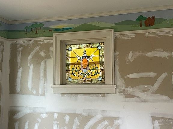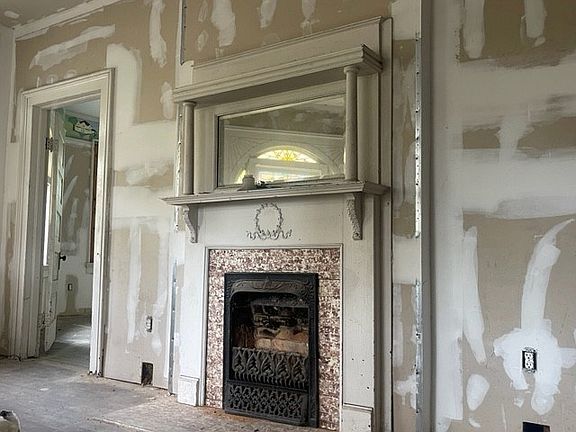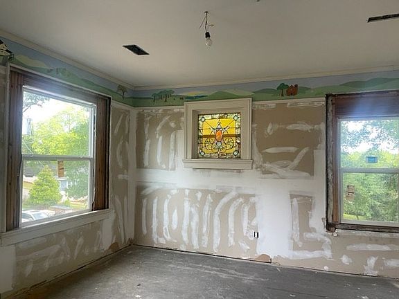Hardy board siding on outside. Home has new windows, except for stain glass which are original. Mantels that were removed for renovations come with home.