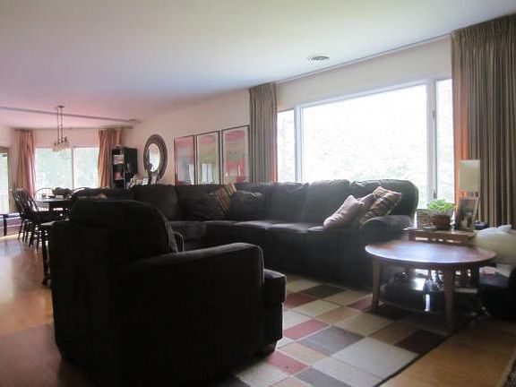 This beautiful and spacious contemporary ranch includes scores of improvements, quality craftsmanship, and amenities throughout. Gleaming hardwood floors, custom cherry kitchen, sauna, open living space and sun room provides comfort and peace of mind. The master suite and expansive deck overlook a park like setting, woods, and a neighboring pond. Lower level includes rec. room, office, work shop, laundry room, and extra storage. Property is in a great location approx. 2 miles from Ithaca Commons, Cornell University, and Belle Sherman Elementary School. Very nice garden level apartment.