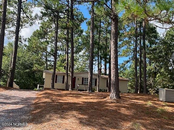 Best deal for quality value home living just outside Pinehurst and Seven Lakes! Located just a few short miles from the Village and close proximity to hospital, medical facilities, schools, shopping and dining for convenience. This lovely, well-kept home has been recently updated and looks amazing! Metal roof only 3 years new! Interior has new LVP throughout the home, and fresh paint. Upon entering, greeted by oversize Living Room with vaulted ceiling highlighted by centrally placed fireplace. Open floorplan with kitchen and dining room combination with sliding glass doors opening to back deck and spacious backyard. Split bedroom plan with Primary Suite separate end location from guest bedrooms. Each bedroom has great storage walk-in closets. Primary suite has direct access to laundry. Home is quietly tucked back from the main road with gravel drive and parking area direct access to side entrance. Home has been well cared for, and pride of ownership shows. Seller has inspection reports including home inspection, septic, well and termite and will share upon request.