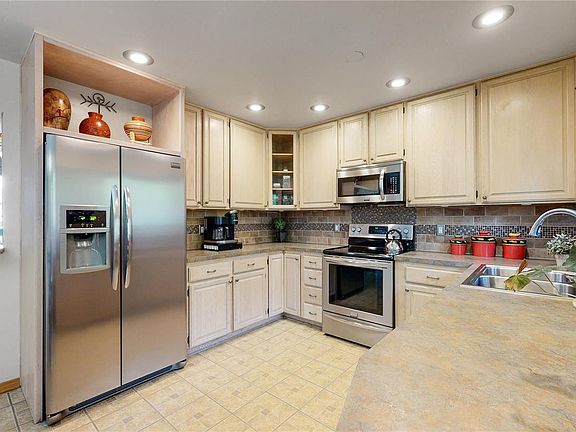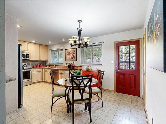 This home features new paint and thoughtful updates throughout. The welcoming kitchen features spacious amounts of wood cabinetry, stainless steel appliances, and dining space that opens to a gorgeous view of the cliffs of North Table Mountain. The living room features a picturesque window where you can see the historic School of Mines ‘M’ from the couch! A centrally located bath has brand-new shower/tub tile, LVP flooring, and a welcoming skylight. The basement is finished with fresh paint, new carpet, and a spacious laundry with plenty of storage. Downstairs you will also find a large family room which is perfect for entertaining or movie nights on the sofa. Walk out garage includes a workbench with room for all of your tools. Easy access to the Golden Cliffs climbing area, just steps away from the house.
