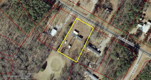 A cleared .47 acre lot with septic, well and where county water is available. The trailer on parcel has no value and being sold in as is condition. Easily take the trailer off and start anew. Lot is located on the golf course where doublewides and singlewides are allowed. Subdivision has community area and boat ramp for access to the lake.