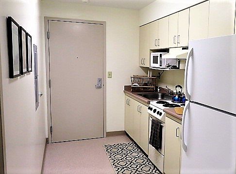 Try a 1-Bedroom Apartment, One Block from the Commons! Located at the base of South Hill, just one block from the Ithaca Commons, Cityview apartments are an excellent option for students and young professionals! All Cityview apartments feature wall-to-wall carpeting in the living area, as well as high ceilings with large bright windows that create a bright, open feel. This all steel and masonry building offers studio, one, two, three, five and six bedroom apartments. Amenities include coin and card operated laundry and 24hr access to the fitness room. Management is on site and emergency maintenance is available 24/7. Security features of the building include exterior and common area security cameras, proximity tags entry, and intercoms at the entrances. On-site parking is available at an additional fee. Each 1-bedroom apartment has a modern kitchen with a full-size refrigerator, microwave, dishwasher, and an electric oven and stove. The living room is furnished with a couch, an armchair, a coffee table and end table, and a dining table with chairs. The bedroom has a full-size bed, a dresser, a bookcase, and a desk and chair. All apartments have window A/C units. Apartments are pre-wired for phone, TV, and high-speed internet. Rent includes tenant-controlled heat, hot/cold water, and access to the building's laundry and trash facilities. Internet and parking are available for additional fees. Leases are for twelve months, with an option to sublet. A security deposit equal to one month of rent is due upon lease signing. No pets allowed.