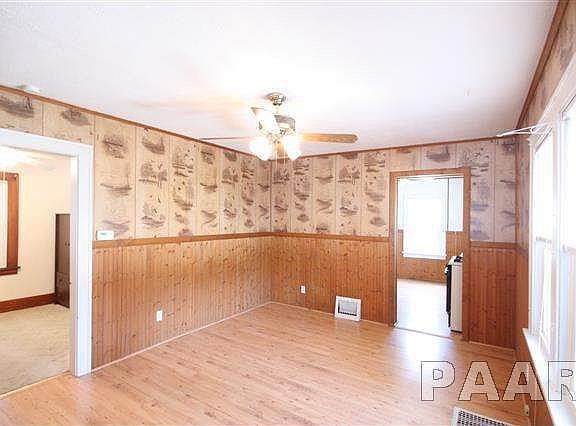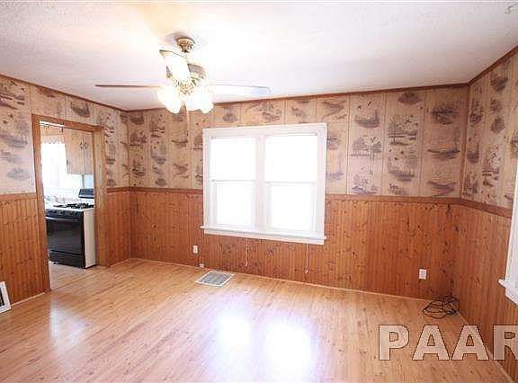 Charming 2 bedroom home with full basement. Within walking distance to East Peoria high school. Covered front porch. Detached 1 car garage. Privacy fenced backyard. Garbage included in taxes. Updated windows and siding. Move in ready!
