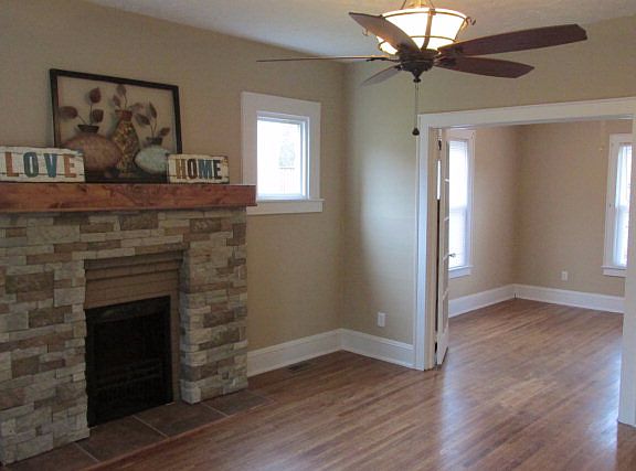 Full of updates! Stunning 3 bedroom home. Hardwood floors, new windows, ceramic tile kitchen & baths, woodburning fireplace with stone mantel. Covered front and back porches. Driveway at rear of house.