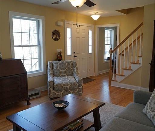 Pristine condition! Newer construction, built in 2013. Open and bright floor plan. Hardwood floor throughout. 4 Bedrooms + a home Office. 14x21 Eat-In Kitchen featuring stainless steel appliances, island, and granite countertops. Sliders lead you out to deck overlooking the quiet backyard. Living Room w/ fireplace. Master suite with 2 walk-in closets, and a custom Full Bath. Upper level laundry. Central Air. Walk-out basement, ready for your finishing. All privately set on just about 4 acres.
