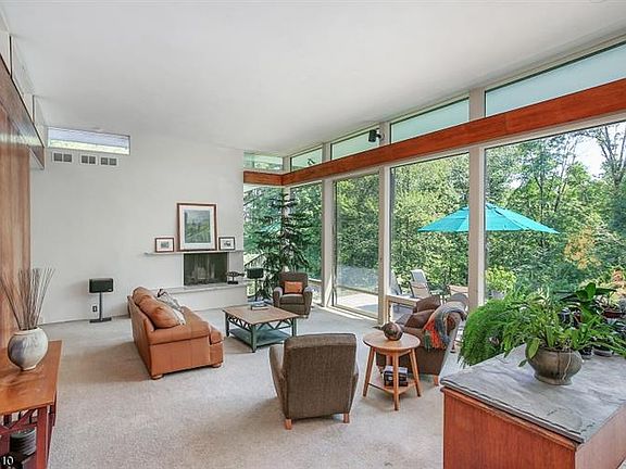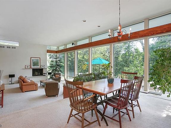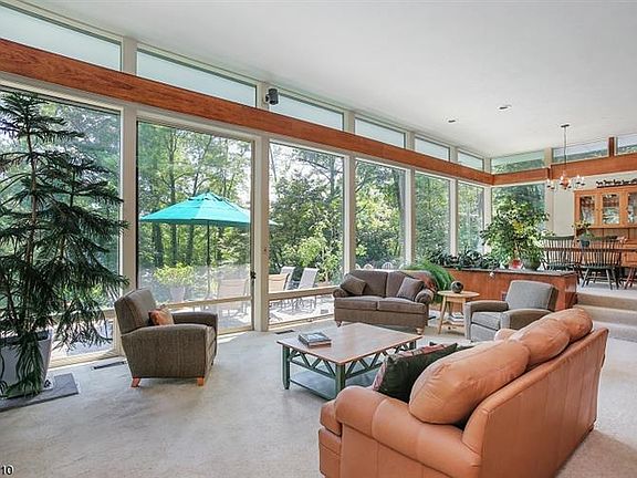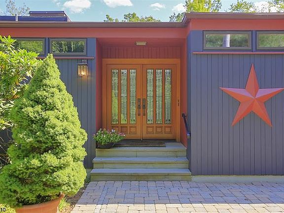 Eclectic mid-century modern style ranch home nestled in Watchung mountain, inspired by Architect Sidney Shelov, constructed with steel beams, Wall to Wall and Floor to ceiling large windows with the southern exposure, sunny and bright home with amazing private back yard, Newly installed exquisite double door entry leads to utmost inviting bright rooms, Handsome kitchen with elegant wood floor, beautiful walnut cabinetry, granite tops, center island with attached breakfast table and upscale appliances, kitchen has a beautiful door to Epay wood deck for BBQ, large Kitchen was updated with the great modern taste, There are three bedrooms including spacious master suite with full bath, huge walk out basement has high ceiling and big open space without columns and over sized two garages with plenty of storage.