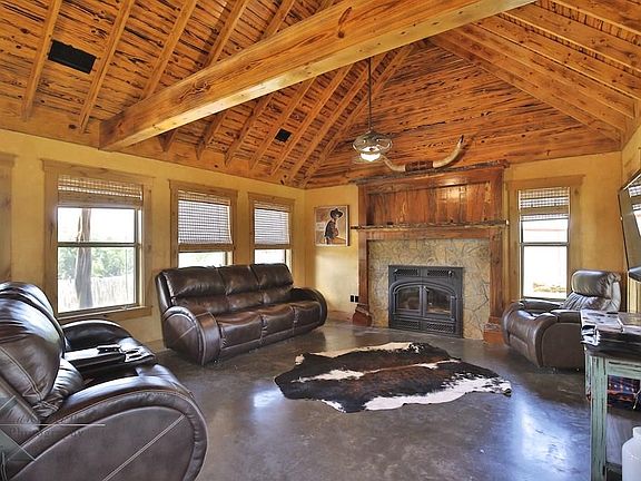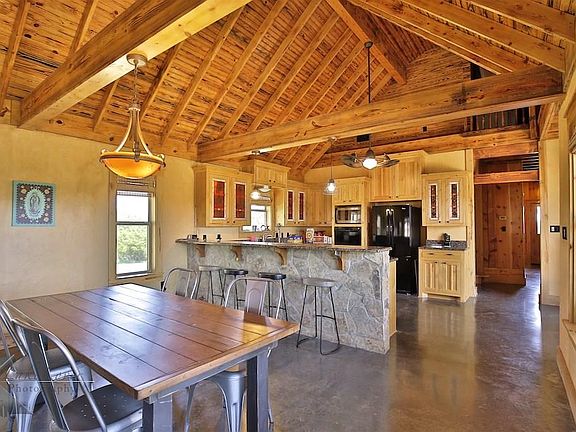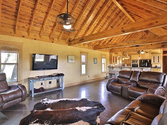 Fantastic rustic home custom built in 2007 on over 10 acres. Large horse barn with 7 stalls, tack room, guest quarters, hay barn, large equipment barn with workshop. House has 2 bedrooms with a large welcoming floor plan. Beautiful views throughout the the entire property with Elm Creek frontage. Balconies and porches to spend hours enjoying you million dollar view. Appraisal in hand.