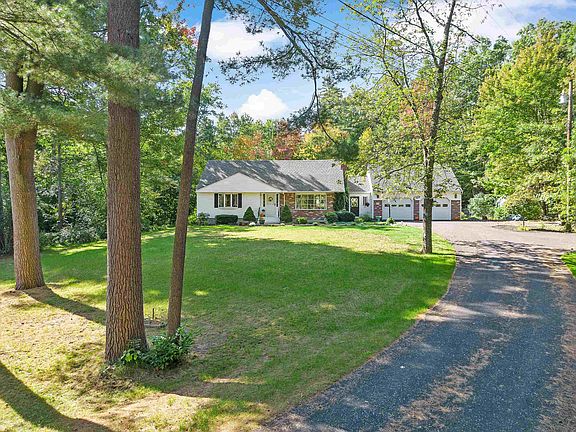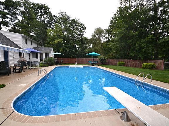 Vacation in your own backyard paradise with this spacious full dormer Cape that sits over 250 feet back from the road. The beautiful backyard features an in-ground pool, patio, awning, gazebo, shed & fencing. Step inside to a flexible floor plan with a 1st floor bedroom & bath, large custom eat-in kitchen with granite counters, two additional walls of cherry cabinetry, extra counter space breakfast bar & stainless steel appliances plus a breakfast area. Sliders from the kitchen lead to a charming sunroom that you'll love & enjoy morning, noon & evenings while looking out at the private peaceful yard. The living room is a step down with a brick fireplace & large bay window. And the formal dining room fits a large dining set. Upstairs features 2 generously sized bedrooms & a remodeled full bath. The basement is partially finished, has the potential for a half bath, & offers plenty of storage space. The breezeway leads to the house, 2-car garage & backyard patio. A newly resurfaced extra large driveway will accommodate plenty of guests, an RV & other toys. Fantastic location for access to shopping, restaurant & easy commute north & south on Route 93- only one half mile away.