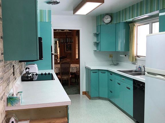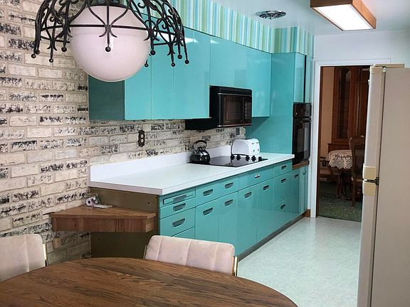 Built to last and lovingly maintained, this midcentury marvel contains the best of both worlds. Updated refrigerator, cooktop, oven, microwave, washer and dryer afford all the conveniences of the millennium, while the original fixtures and wall and floor treatments preserve this home's fundamental charm. YES that is immaculate, original, turquoise metal cabinetry in the kitchen! (How can I say love this place without saying I love this place?) Generous windows on the main floor provide an abundance of natural light to the open living room, while the dining room opens to the patio and fenced backyard for flexible warm season entertaining. Two large bedrooms (one currently functions as a home office) a full bathroom, and a half bath round out the main floor; while downstairs boasts a finished family room complete with fireplace and bar, full bathroom, two nonconforming rooms and a huge laundry/utility room. Propane heat, air conditioning, a new roof, and fully landscaped yard round out the main features of this beautiful, ''happy'' home. Call today to make an appointment to see YOUR perfect landing place.
