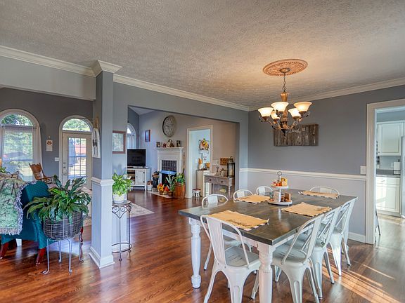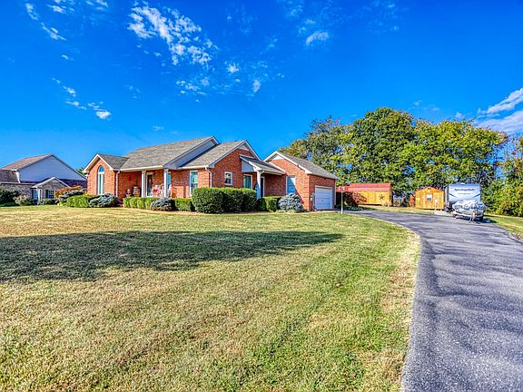 Beautiful all brick house, hardwood throughout, Separate Dinning room, Spacious Primary Bedroom with jetted tub and separate shower, large walk in closet, Large living room with 14ft vaulted ceiling, gas fireplace, 20X10 Covered porch and 12X6 covered side porch that leads you into the Kitchen, Wide hallways, 2 sheds that you have to see with an entertaining area, 2 car attached garage
