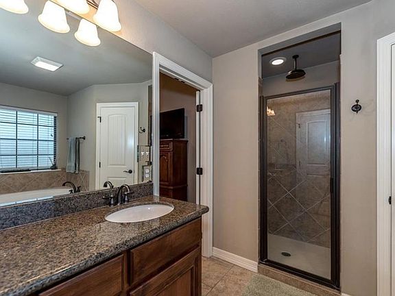 Absolutely perfect family home with a large backyard. Very well maintained home in a great location for shopping, restaurants, and the growing south end of College Station. Open floor plan living room and kitchen with, granite countertops, walk-in pantry, eating bar. The house has a two car garage, split bedroom floor plan, raised ceilings in several rooms, beautiful trim features. Master is large with Master bath featuring separate tub/shower, his and her vanities and two separate walk-in closets. Large backyard with a lifetime swing set, solar screens, irrigation system. Nothing has been left out on this home! Washer, dryer, refrigerator, trash, recycle, and lawn care included in lease. Furniture may be included if interested. Tenant responsible for gas, electric, trash, and sewer.
