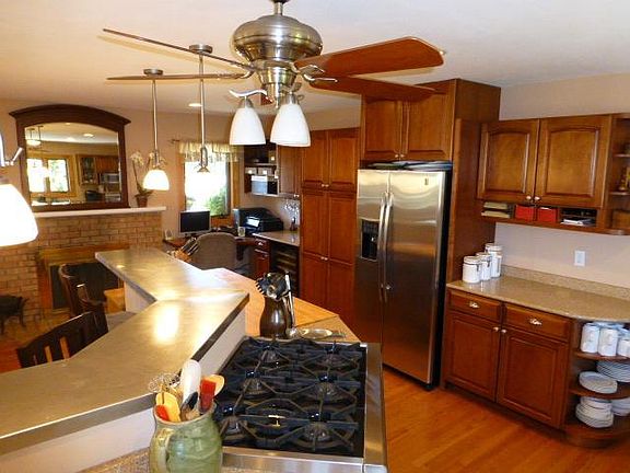 So much space with two living areas, five bedrooms, and one of the grandest kitchens around! Gorgeous back yard, RV parking space, large laundry room, and refrigerated air conditioning, too! You and your guests will never want to leave the superbly remodeled and wide open kitchen with raised bar counter, adjacent gathering area, dining room, and cozy office corner with fireplace. The chef will love the variety of countertops, double oven, prep refrigerator, gas burner cooktop, and large farm style sink basin. Designer lighting, beautiful cabinets, and hardwood floors finish the look. Front and back yards are fully fenced and landscaped with patios, basketball/kids' play area, very nice storage shed, garden beds, and fruit trees. Back yard also offers 5-zone sprinkler/drip system. Garage is insulated (nice for pets during winter). Close to walking trails, parks, pool, library, and shopping --- just a great find!
