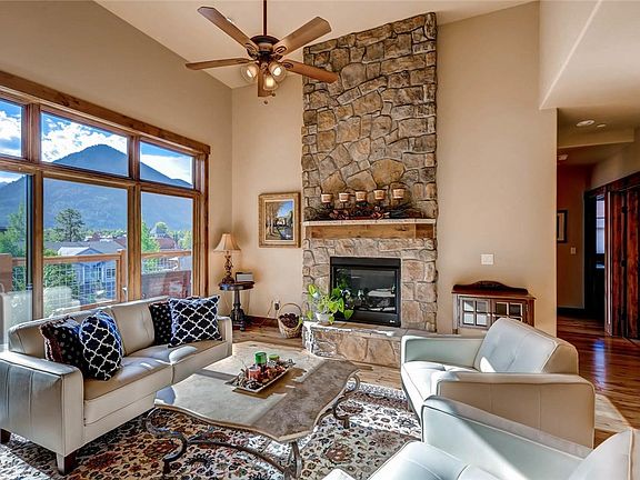 This is the best Frisco has to offer! Open concept PENTHOUSE unit just one block off Main Street in the heart of Frisco, just 6 months old and in brand new condition. All 3 bedrooms are en suite, with a fireplace and private deck off the master. Wood floors throughout and floor to ceiling rock surround fireplace in the living room + den/study. Great mountain views from 3 decks and lots of sunshine from this south and west facing unit. Private elevator access and a 2 car garage.