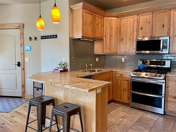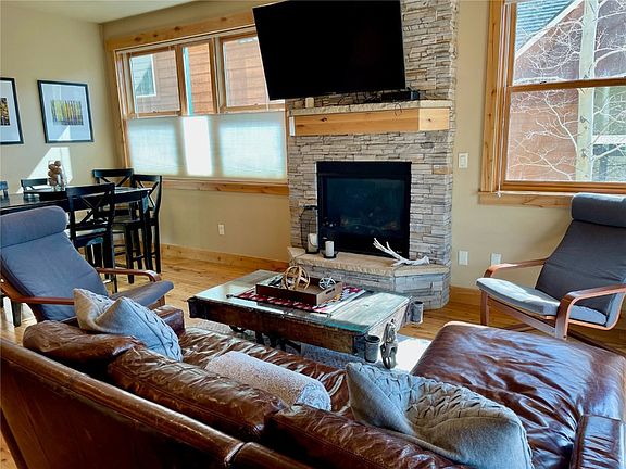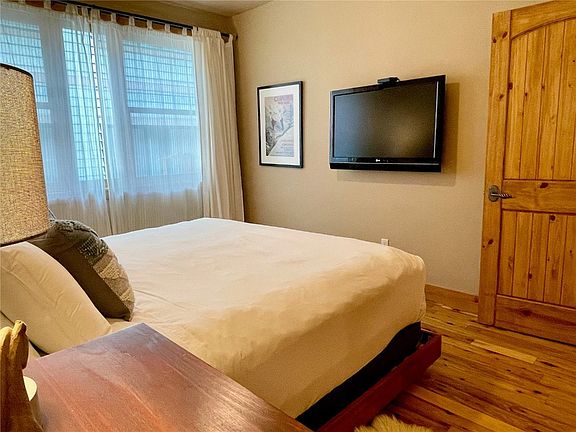 This condo in the heart of Frisco has all the right touches! Leathered granite counter top and quality stainless appliances in kitchen. Primary suite has a spacious private bath with double sink vanity, steam shower with dual heads and a spacious walk-in closet. Comfortable second bedroom and den (complete with closet) share the second bathroom which has a deep jetted tub. All this only one block to Main Street, steps from recreation/bike path and walk to free bus.