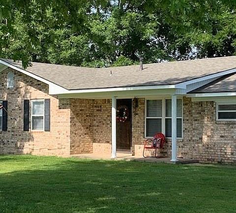 CORNER LOT in town With large shade trees ,This Move in ready 4 bedroom , 2 bath home has open dinning and living room, a spacious laundry room ,in the last year they have put in new windows , roof , and siding and paint , ,There is a covered front porch,The front yard has some fencing ,Concrete drive way with turn around and Large pecan trees .All of this within 4 blocks or less to school , groceries , pharmacy,post office ,churchs
