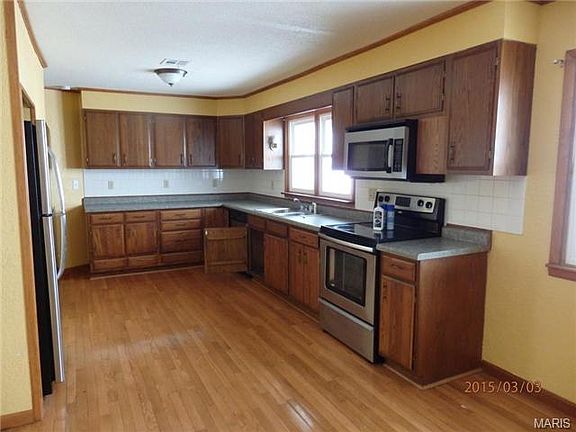 Three bedroom and two bathroom full brick ranch home with many updates. Large living room with new carpet and woodburning fireplace. Kitchen and dining room combination with built-in storage cabinet. The kitchen has many updates including refacing of cabinets, new hardware, new countertops, new pantry with pull-out shelving, appliances, and hardwood flooring. Both bathrooms have new tub surround, ceramic flooring, vanity, fixtures, and paint. New carpet and fresh paint throughout the entire house. Exterior is low maintenance with replacement windows, new roof, tuck pointing of chimney and new flue, gutters, and deck was recently painted. Enjoy the nice wooded yard from the deck. If you are looking for a home that is move-in ready, look no further!