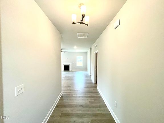 FINAL OPPORTUNITY. 1K DEPOSIT. Welcome to your well designed ranch home with 3-car garage on .42 acres so that you can have lots of privacy! Perfect for 1st time owner or downsizing. Step onto the covered front porch and enjoy coffee or tea while listening to nature or private covered lanai in the back for entertaining or enjoying the outdoors. Open up into the large foyer with upgraded laminate throughout foyer, FR, breakfast area and kitchen. Enjoy your upgraded ss gourmet kitchen appliances in your white cabinets throughout kitchen with white quartz counter tops. Entertain in your open concept kitchen, FR with ceiling fan and breakfast area. Primary Bedroom includes trey ceiling with crown molding, ceiling fan and walk in closet. Primary bathroom includes double vanities, separate water closet and ceramic tile shower with separate soaking tub. Charlestowne is 6 miles from I-95 and downtown Smithfield, Smithfield Outlets, restaurants, entertainment, Hwy 70 Bypass, 70 Business and minutes to I-40, Benson, Raleigh, Goldsboro and Princeton.