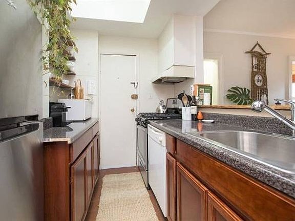 Beautiful one bedroom & den on top floor in row house in Fort Greene. Hardwood floors, wood burning fireplace, open kitchen and trees out the windows on both sides. The den is large enough for a kids room, home office, or guest room. Laundry on the second floor.