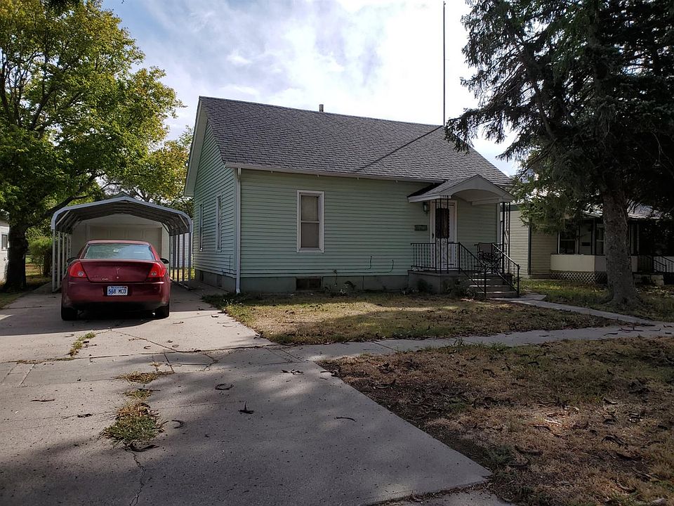 Motivated Seller. This old-style home has 2 bedrooms, bath, living room, and kitchen on the main floor. Hardwood floors and high ceilings add to the charm of this 725 sq ft. home. The basement is partially finished with a laundry room, storage area, office, potential non-conforming bedroom, and bath.Updates are a newer roof, vinyl siding, single car garage with a carport for extra off-street parking. There is a spacious backyard with a shed which would make a great child's playhouse or a man/she space.