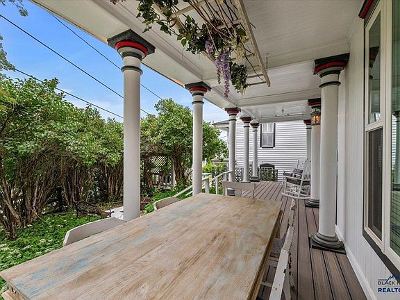 Stunning designer-inspired restored 1921 home with breathtaking views and absolute privacy. This home has no street in front of it, keeping it serene and secluded, making it a perfect retreat from the hustle and bustle of everyday life. Updated insulation ensures comfort year-round, while the restored front porch invites you to relax and enjoy the peaceful surroundings. The expansive Trex-decking on the sprawling front porch provides a durable and stylish space for outdoor gatherings or quiet mornings sipping coffee. A water softener enhances the quality of your daily routines, while the large open master shower brings a spa-like experience to your home. The original clawfoot tub adds a touch of vintage charm, perfect for unwinding after a long day. Intricate ceiling tiles and elegant crown molding throughout the home reflects its historical significance, blending modern convenience with timeless beauty. The lilac trees that grace the property offer delightful blooms in the spring, while the rock walkway leads you through the lush landscape. Imposing historical columns frame the entrance, showcasing the home's classic architecture, and stunning stained glass windows bring colorful light into living spaces. The sunroom is a bright and airy retreat, perfect for reading or enjoying the views year-round. Original hardwood floors add warmth and character, while exposed ceilings create a sense of openness and charm.