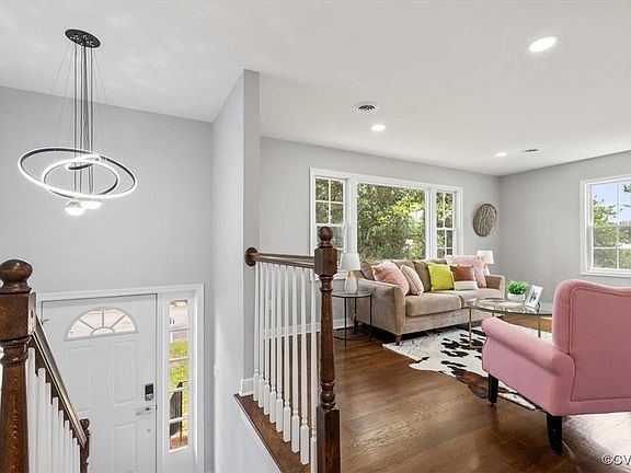 Newly refinished hardwood floors throughout the entire first floor. Freshly painted throughout with new doors and hardware. Cooks delight with brand new kitchen cabinets and quartz countertops, new stainless steel hood, smooth top stove, and refrigerator with icemaker. Kitchen opens to the dining room. Recess lights and new light fixtures throughout plus the home has plenty of natural light! Both bathrooms have been completely remodeled as well with tile floor new vanity with Corian countertops and stylish tile showers with built in niches. Plus vanity mirrors with different light settings for your needs. On the first floor, you will find two bedrooms and the additional third bedroom on the first floor with an enormous additional room that could be used as a fourth bedroom. The garage provides extra space for storage and when entering the home, the immediate room can be used as a workout room, rec room, or office to fit your needs. New vinyl replacement windows throughout! You are surely going to enjoy this home! Great neighborhood and fantastic location.