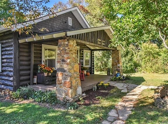Adorable 3/1 1925 Log Cabin located in the heart of Black Mountain on .41 acres. House has .25 acre lot and extra buildable lot has .16 acres. Zoned Central Business District. Enjoy living or having your business downtown. Walkable to all restaurants & shops. Beautiful level back yard w/mature trees. See new survey attached and town required setbacks for CBD.