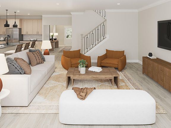 Welcome to Crescent Mills! The brand new master-planned community by Ashton Woods featuring outstanding amenities including a swimming pool with slide, club house, pool house, grilling & picnic areas, pickleball courts, playgrounds, a dog park, walking trails and plenty of green spaces! The amazing Jordan plan offers 5 bedrooms, 4 baths and a 2-car garage. You'll be welcomed into this home from the grand entry foyer and spacious office leading into the Gourmet Kitchen featuring an expansive 8' island, family room with cozy modern fireplace & floating mantel 1st floor bed, full bath and study. Enjoy the classic, yet warm kitchen with Franklin Blue shaker cabinets. quartz countertops and satin bronze finishes, and large walk-in butlers pantry. Beautiful stairs with iron railing take you to a spacious loft, 2 secondary bedroom with WIC's and Spa like primary suite retreat with 2 walk in closets and soaking tub.