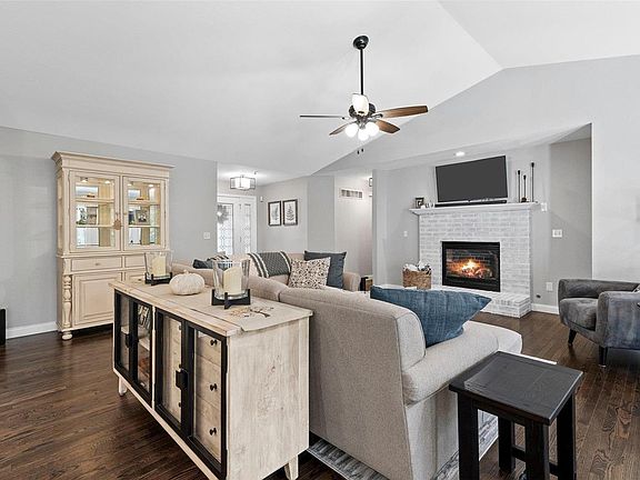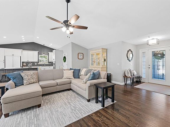 WOW! This stunning lake property is sure to impress. Timeless & classy details along w/ gleaming hardwood floors, vaulted ceilings, wall of windows, oversized garage, & epic outdoor space are everything you've been waiting for. The living room is the perfect place to snuggle up next to your cozy gas fireplace. The kitchen is a chef's dream, complete w/ tons of prep space, granite counters, induction cooktop, island w/ breakfast bar, custom built cabinetry w/ molding, & stylish tile backsplash. Walk out from the dining space onto the deck overlooking your beautiful lake view & park-like setting. The primary bedrm suite showcases a vaulted ceiling, bay window & en-suite bath w/ dual sinks, whirlpool tub & shower. Main level has 2 more bedrooms, full bath, & laundry room. LL has a bedroom & full bath along w/ large family room and unfinished storage space. W/O basement leads you to a covered patio overlooking well manicured backyard. 3 car oversized garage! AND 5 lakes in this community!