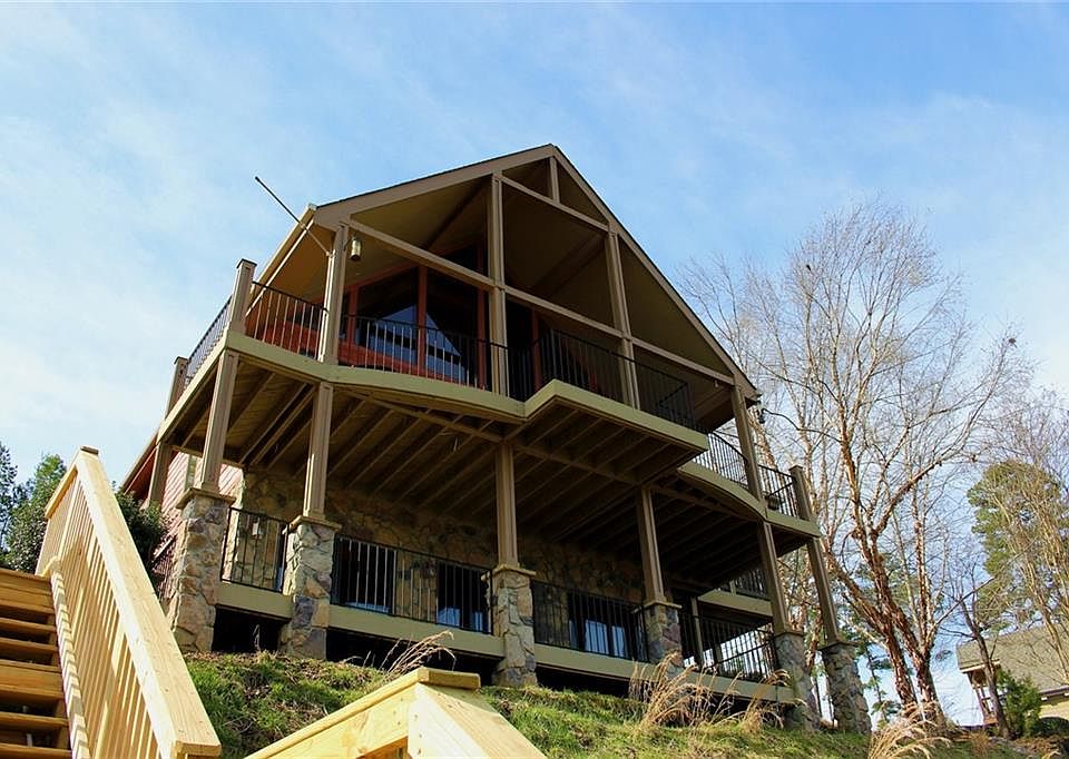 A beautiful Craftsman cottage with one of the best mountain views on Lake Keowee. This home features 3 bedroom 3 bath rustic interior with notty pine flooring and walls on the main level, gas fireplace and screened in side porch. This home is located in the Royal Reserve, a small community surrounded by The Reserve. This community allows short term rentals, is gated and has a boat ramp. Furniture is negotiable.