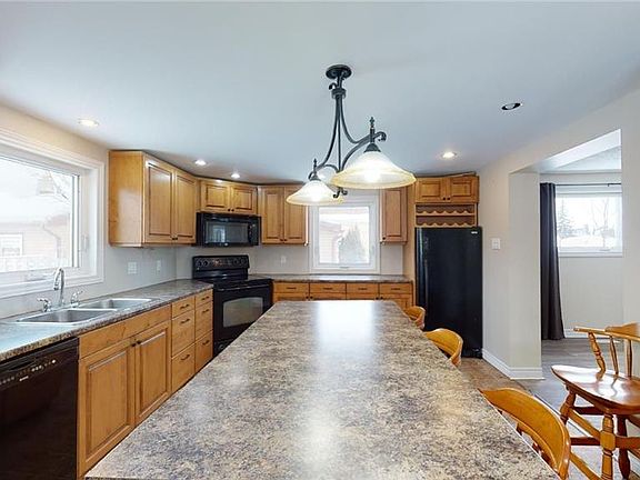 This renovated 1.5 story frame home is located close to the square, and features main floor living, a spacious kitchen with an island, an open living room, main floor 4pc bathroom with laundry and a main floor bedroom. The home has been gutted and re-wired, plumbed and insulated (R22 walls, spray foam basement/crawl space in 2019) with updated vinyl siding (2011) and added 2 dormers upstairs (2010). There is a ductless A/C unit, forced air gas heat, a concrete drive and concrete patio, partially covered, and an insulated detached single garage that has hydro built in 2013.