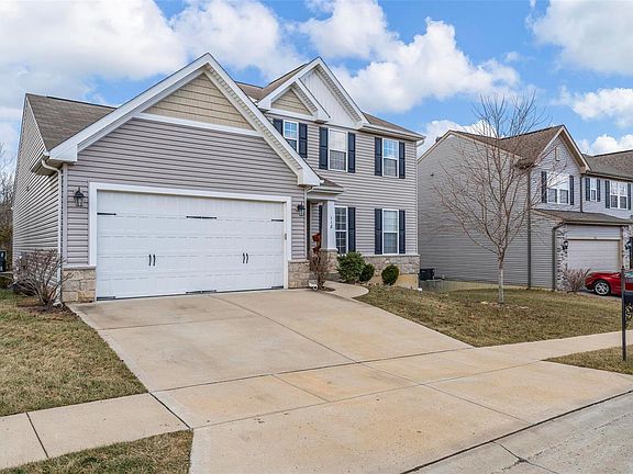 Welcome to this custom-built 1.5 story traditional home in San Marino's private and quiet neighborhood just minutes from Gravois Bluffs! This home provides huge open family space with adjoining kitchen, dining room and living room. A wood burning fireplace is located in the living room. All custom drapery will stay. The kitchen with its beautiful countertops, custom cabinets and island in the middle provide ample space for everyone to gather. Dining room provides large space for family gatherings. Master bedroom on the main floor includes a luxury bathroom with double sinks, separate shower and tub, and custom walk-in closet. You'll love the main floor laundry! Upstairs you'll find 2 more bedrooms and nice sized loft. Walk-out basement is ready for your finishing touches. A 2-car oversized garage (24ft depth) includes shelving for storage and 8' garage door. Do not wait this one will not last long!
