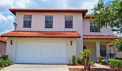 Absolutely gorgeous Mediterranean style 4 bedroom, 2 1/2 bath home with tile roof. Located in the gated High Grove Resort. This home is tastefully decorated and is sold fully furnished. The beautiful screened pool has a paved deck and pool heater, so you can enjoy year round swimming! Downstairs you will find a great room living area with open kitchen and dining room. The kitchen features a convenient pass through bar and all appliances are included. Nearby is a pool access powder room and interior laundry room. The attached 2 car garage currently serves as a game room with pool and air hockey tables. Upstairs you will find the master bedroom with enclosed bath. The master bathroom features dual sinks, garden tub and separate shower. There are three additional bedrooms upstairs with another full bath. This home is currently a vacation home with bookings that can transfer to the new owner. It would also make a lovely home for your family! Enjoy all that High Grove has to offer with its'' Clubhouse and daily concierge. The Clubhouse features a huge community pool and hot tub. There is a fitness room, arcade, business center and game room. You will also find a playground and 9 hole mini-golf. Visit today to see all that your new home has to offer!