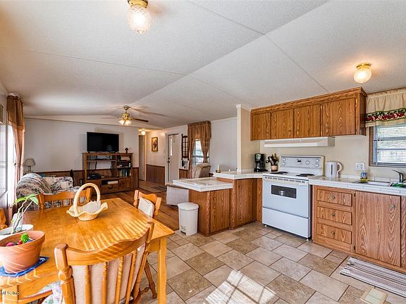 Neat and tidy cozy home with new tile and laminate flooring, newer roof, open floor plan split bedrooms, walk in closet, a porch for enjoying the meticulously maintained and landscaped yard with citrus trees, all sorts of flowering shrubs, and plants. This home is turn key and move in ready as it comes fully furnished. On a paved road too!