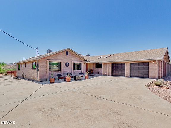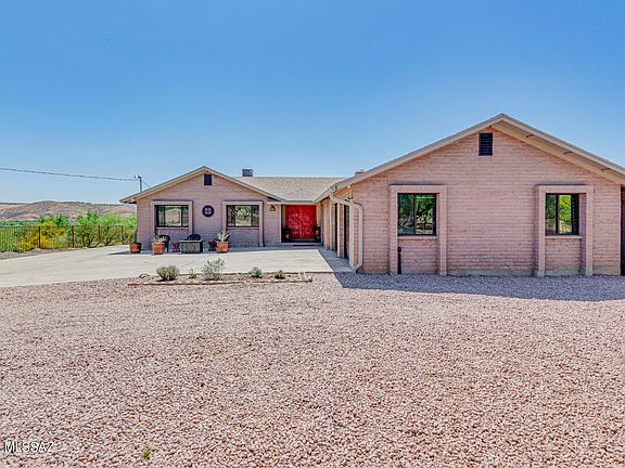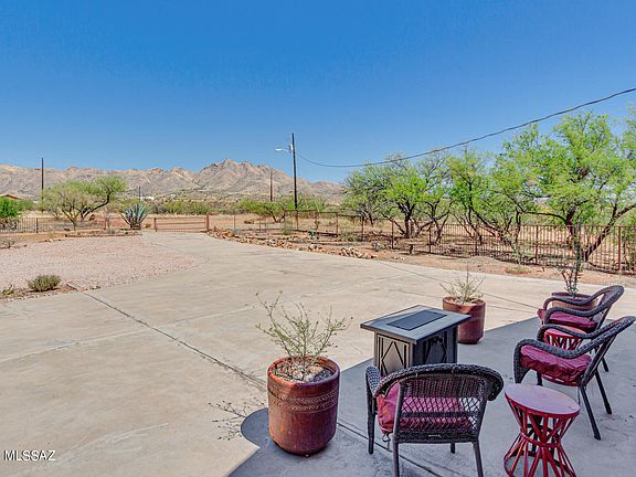 Enjoy the sophisticated style of this spacious home, perched high on an expansive (2.37-acre) lot and offering gorgeous panoramic views of the Tumacacori and San Cayetano mountains. Fenced and gated with a welcoming front terrace, you'll experience the luxury of an elegant resort-style outdoor living space featuring pool with spa and water feature, generous pool deck and ramada for sheltered seating, grilling, and entertaining. Interior design details include vaulted ceilings, skylights, arched doorways, interior shutters, tile flooring and updated fixtures and finishes throughout. Huge eat-in kitchen features a seated marble waterfall bar, stainless steel appliances, built-in sideboard in adjoining dining area. Owner's retreat features seating area, walk-in closet and en suite bath.