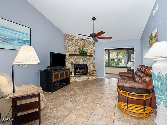 Terrific attached home on a very small, quiet, cul-de-sac in sought after Indigo Lakes community. 3 bedroom, 2 bath end-unit has a spacious yard that is partially fenced for your pets/children's play area. Coquina stone, wood burning fireplace in the living room is a show stopper. Loads of Storage. 18'' Ceramic Tile & Carpet. Amazing FL RM. HOA covers lawn, cable/internet, termite bond & exterior paint, so you can relax and enjoy. Great home for retirees, first time buyers, families & investors. Investors-60 day Rental Minimum. This home is situated near major roads, shopping, the Speedway, colleges, hospitals and the ''World's Most Famous Beach. Roof 2022. Selling as is with inspections gladly welcomed. All information/measurements are approximate, deemed reliable but not guaranteed.