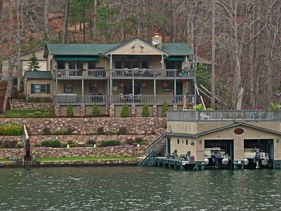 -SEE VISUAL TOUR! Immaculate 3BR, 2BA Lake Lure LAKEFRONT with stunning VIEWS! Level entry, upper and lower full kitchens, granite counters, stainless appliances, lake view living room, stone fireplace, hardwood floors, BIG lake view Master Suite, lower level family room, office, bonus room, 2 full length decks, hot tub, and workshop, Whole House Generator. Double 30'x30' boathouse w/docks, 2 lifts, rooftop deck. Double 20'x24' garage w/storage attic.