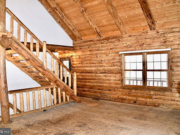 A little piece of Heaven? Your chance to own a magnificent log home on a 25 acre wooded lot! What more could you ask for? The home has exposed logs inside and out, wood floors, wood beams and more! The main level features a Great Room with cathedral ceilings, a 2 story stone fireplace, open staircase, a kitchen with tiled counters, 2 bedrooms a full bath with laundry area. The second floor is home to a large loft, the main bedroom with its own full bath and walk in closet and then an office or potential 4th bedroom. The basement has another full bath, the attached 1 car garage, mechanicals - oil OR wood heat as well as plenty of storage space. It is also partially framed out for more rooms if needed. Ouside you will find a wrap around, covered porch/deck, a fish pond, wood shed AND a 1.5 story 4 car garage that is sure to please! This property sits back a stone lane that is OVER a half mile long! The lot is primarily wooded and great for hunting, privacy and total relaxation. Properties like this don't come for sale very often, please call to schedule your showing TODAY before it is too late.