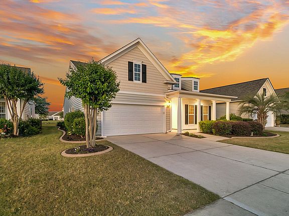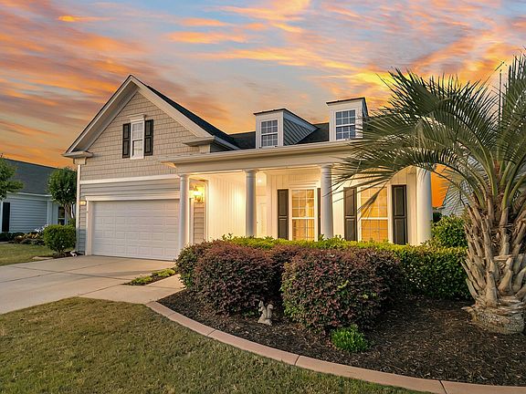Beautifully appointed Vernon Hill home featuring 3 bedrooms, 2 baths, and a French door office. Roof, HVAC, and hot water heater have all been replaced in last five years. Wood-look tile floors extend throughout the foyer, living & dining rooms, kitchen, and home office. The island kitchen includes white cabinetry, granite countertops, subway tile backsplash, stainless steel LG appliances with gas range, a built-in desk extension, and pendant lighting. A cozy gas fireplace and built-in Bose speaker system create an inviting living space. Don't miss the incredible outdoor living areas, which include a screened-in porch with retractable vinyl windows, making it usable in any season, and extended patio with pergola cover overlooking a private lagoon with lighted fountain. Back inside, theOwner's Suite offers a tray ceiling, updated carpet, and a en-suite bath with tile floors, two separate vanities, a walk-in shower and separate jetted tub, and large walk-in closet. Two additional bedrooms sit down their own private hallway, and one includes a Murphy bed. The guest bath offers beautiful mosaic tile floors, a single vanity, a combination tub and shower. The laundry room completes the inside space, and includes the washer & dryer and built-in cabinets. Don't miss out on the opportunity to be part of the Charleston area's premier Active Adult community, Del Webb Cane Bay. With over 100 chartered clubs, a full-time lifestyle director, and full event's calendar, you'll be living your best retired life!