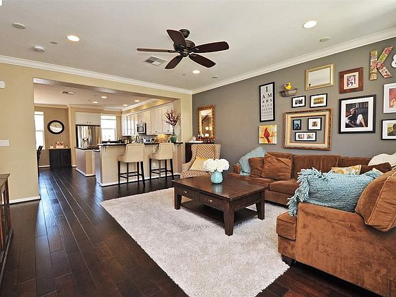 Highly desired model w/ Bedroom & Full Bath on main level. Upgraded wood floors, crown molding, recessed lighting, custom paint throughout. Attached 2-car garage, indoor laundry. Open kitchen w/ granite, SS appliances, bar seating & dining area. Opens to large living area. All bedrooms w/ bath