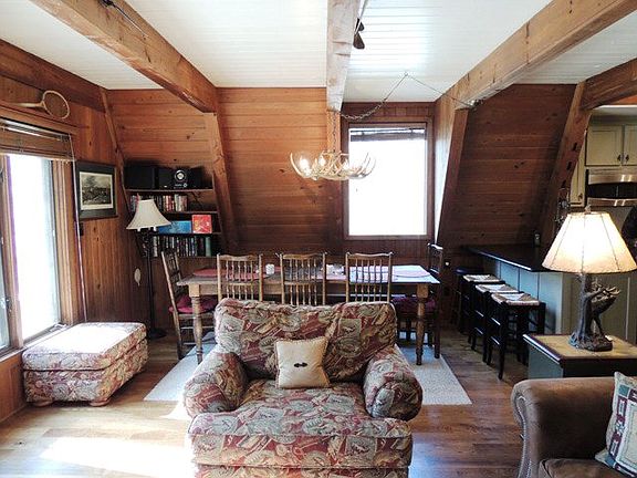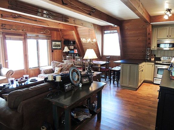 Reduced Price!!! A large A-frame that has been made warm and cozy with four bedrooms/four baths with upgrades/updates in bathrooms and kitchen. Great seasonal view of Grandfather Mountain from living room and deck. Wonderful tree canopy for outside living in the spring, summer and fall. Bouldered lot. House built into and over boulders in finished basement area. Home being sold furnished with exceptions. Wide planked wood floors on main level add greatly to the warm feeling of this mountain home. Parking at top of Shagbark and private drive off of Shagbark for lower level entry.