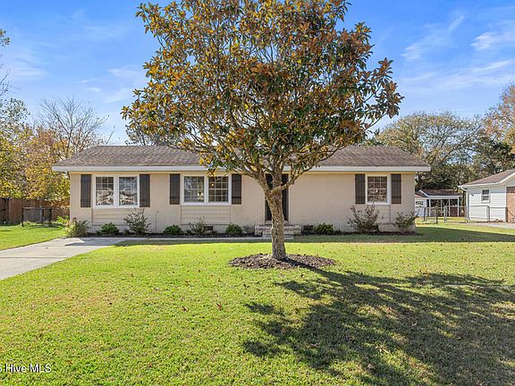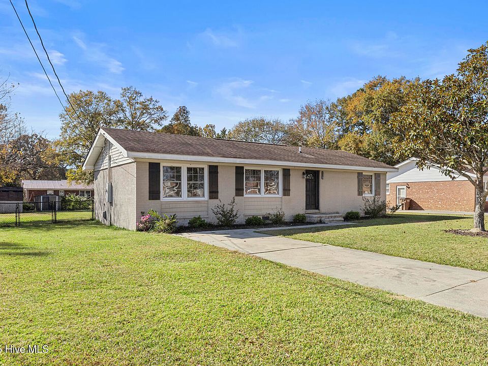 Move in ready! This updated 3-bedroom, 1.5-bathroom home features new paint and flooring, plus a nearly new HVAC system (less than 1 year old). The kitchen shines with granite countertops and subway tile backsplash. Enjoy the private, fenced yard complete with two storage sheds and a fire ring for outdoor living. Located just a short drive from Camp Lejeune and shopping, this property offers incredible value with NO HOA or City Taxes! Schedule your visit today—this one won't last long.