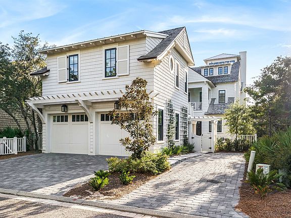 Nestled along the pristine shores of the premier WaterSound Beach community, this one-of-a-kind gulf front haven presents the epitome of coastal elegance. A four-bedroom primary home and a two-bedroom guest house encompass nearly 6,200 square feet of impeccably designed interior spaces while a spacious outdoor courtyard offers a private pool, spa, and lounge area with firepit. From the moment you enter the residence, the meticulous quality of construction is apparent with luxurious finishes throughout including Venetian plaster walls, pecky cypress cabinetry and walls, custom millwork, beamed ceilings, brick accent walls, custom tiled bathrooms, hidden closets and so much more. The first level of the home offers the ultimate gathering space with a secondary living room with multiple