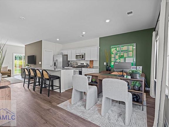 End Unit! The Aspen 3-Story, 4 Bedroom Option, by McGuinn Homes! New townhome conveniently located just minutes from Liberty County High School, Fort Stewart and downtown Hinesville! This floor plan features a 4th bedroom with a full bathroom and one car garage on the 1st floor. The 2nd story is an open concept living space perfect for entertaining with a large kitchen, island and pantry, living room, dining room, and half bath. The 3rd story features the primary suite with a private master bathroom, as well as two additional bedrooms and a second full bath, and laundry room. Key features include quartz countertops throughout, a walk-in pantry, plantation island in the kitchen and backyard patio! Property is under construction estimated completion December 2025. Photos that include furnishings are of a previous, completed unit and do not represent the design selections of all units. Furnishings not included.