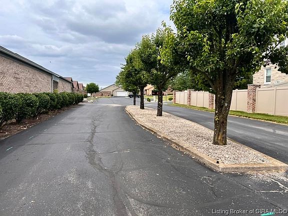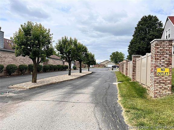 Spaulding Square Patio Home, located to the right of the entrance of Spaulding Square in Scottsburg. Secure gated entrance into your private yard with little maintenance. 2 Car detached garage with opener & extra storage. This large patio home built in 1995, has newer flooring, windows, and HVAC. Features include a gas fireplace with built in cabinets patio doors off the breakfast nook, kitchen has beautiful cabinets and a 2 seater eat at bar and includes stove/oven, & DW. Master bedroom is large with attached bath that features double sinks, walk in closet, soaking tub and separate shower. Second bedroom has newer carpet and patio doors leading to outside courtyard. Lots of natural light. Go for walks around the neighborhood or walk on over to the 18 hole golf course. Only a hand full of sought after homes in this subdivision.