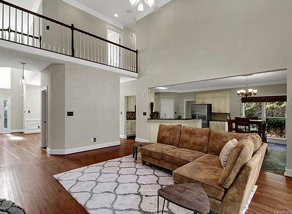 Stunning Home on large lot in lake community! MB on main w/2 walk in closets & built ins; sauna; gorgeous shower; jetted tub; trey ceiling. Gourmet kitchen w/gas cook top; SS appliances; wall oven; granite. Open-concept kitchen-living room with beautiful stone fireplace. Upstairs has 3 large bedrooms & 2 Baths including the ultimate cinema room that includes remote LED lights in crown molding. Separate staircase to lower level. Private fenced yard w/ porch. Basketball court and Saltwater Pool.