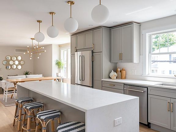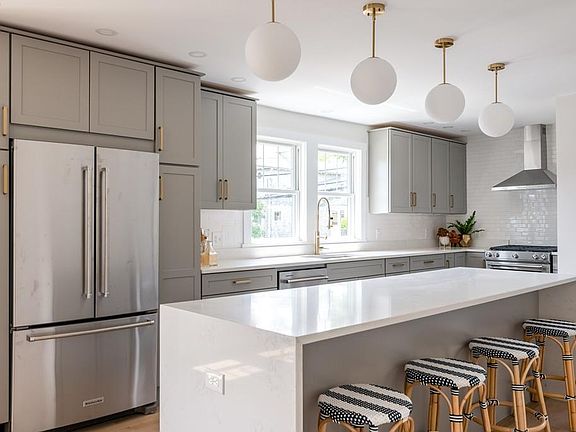 Presenting the penthouse at 118-120 Spring Street, where owners can stargaze into the night sky, and sleep under the majestic beauty of a Sequoia tree from the comfort of their tree top master suite. This 4 bedroom, 3 bathroom home was gut renovated with masterful design and whimsy. Custom-stained, hardwood floors throughout, cathedral ceilings, skylights, and a custom tiled master bath with a view. Here, form is balanced by function, with no convenience forgotten. Parking for 3 cars (including 1 garage space), in-unit laundry, 2-zoned HVAC, storage throughout, two mudroomed entrances, and a private deck with its own gas line make for easy living and entertaining. The gourmet kitchen features vented, gas cooking and a 9 ft island clad in white quartz, with a waterfall edge. 3 blocks from vibrant Watertown Sq, and 4 blocks from the Charles River, this home is an easy commute to Cambridge, Belmont, Newton, and the Pike, as well as being convenient to shoppinng and outdoor activities.